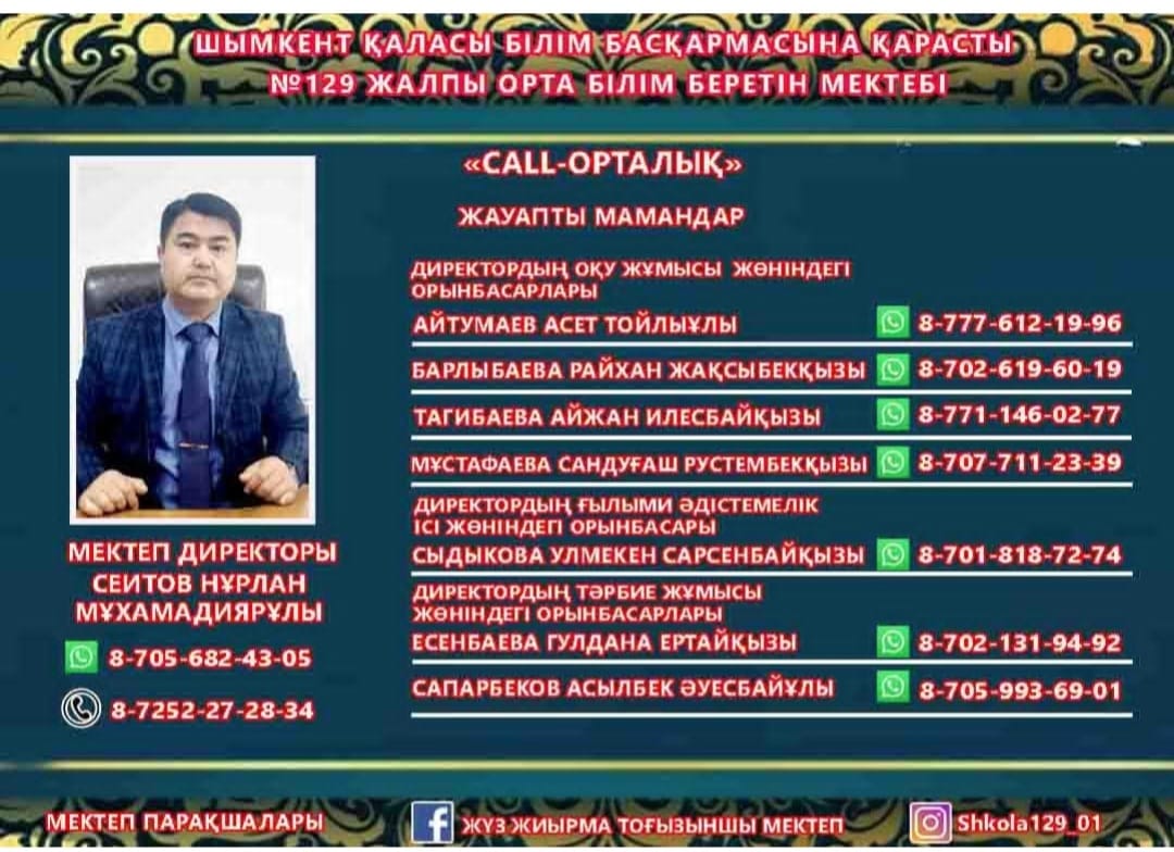 МЕКТЕП ӘКІМШІЛІГІНІҢ ҚҰРАМЫ » №129 жалпы орта білім беретін мектеп