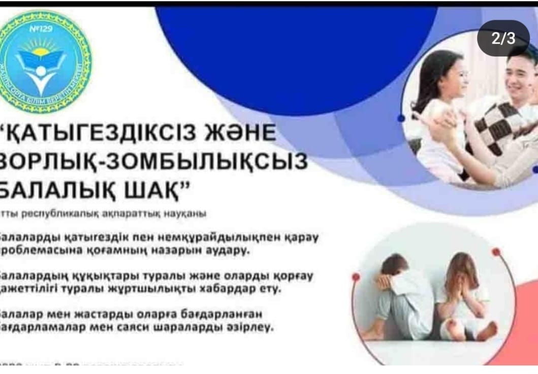 "ҚАТЫГЕЗДІКСІЗ ЗОРЛЫҚ ЗОМБЫЛЫҚСЫЗ БАЛАЛЫҚ ШАҚ НАУҚАНЫ ӨТКІЗІЛДІ » №129 жалпы орта білім беретін мектеп