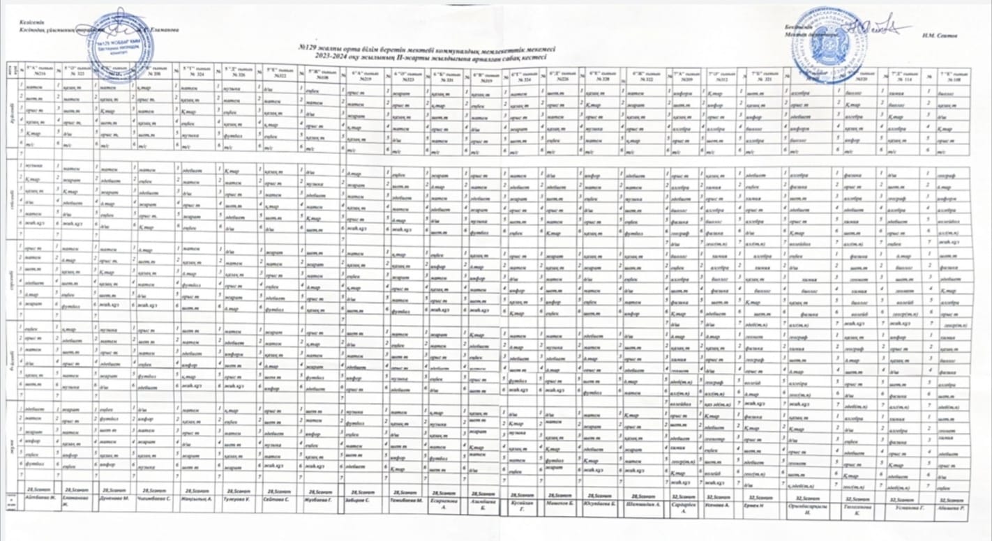 ІІ ауысымның ІІ жартыжылдық сабақ кестесі 2023-2024 оқу жылы » №129 жалпы орта білім беретін мектеп