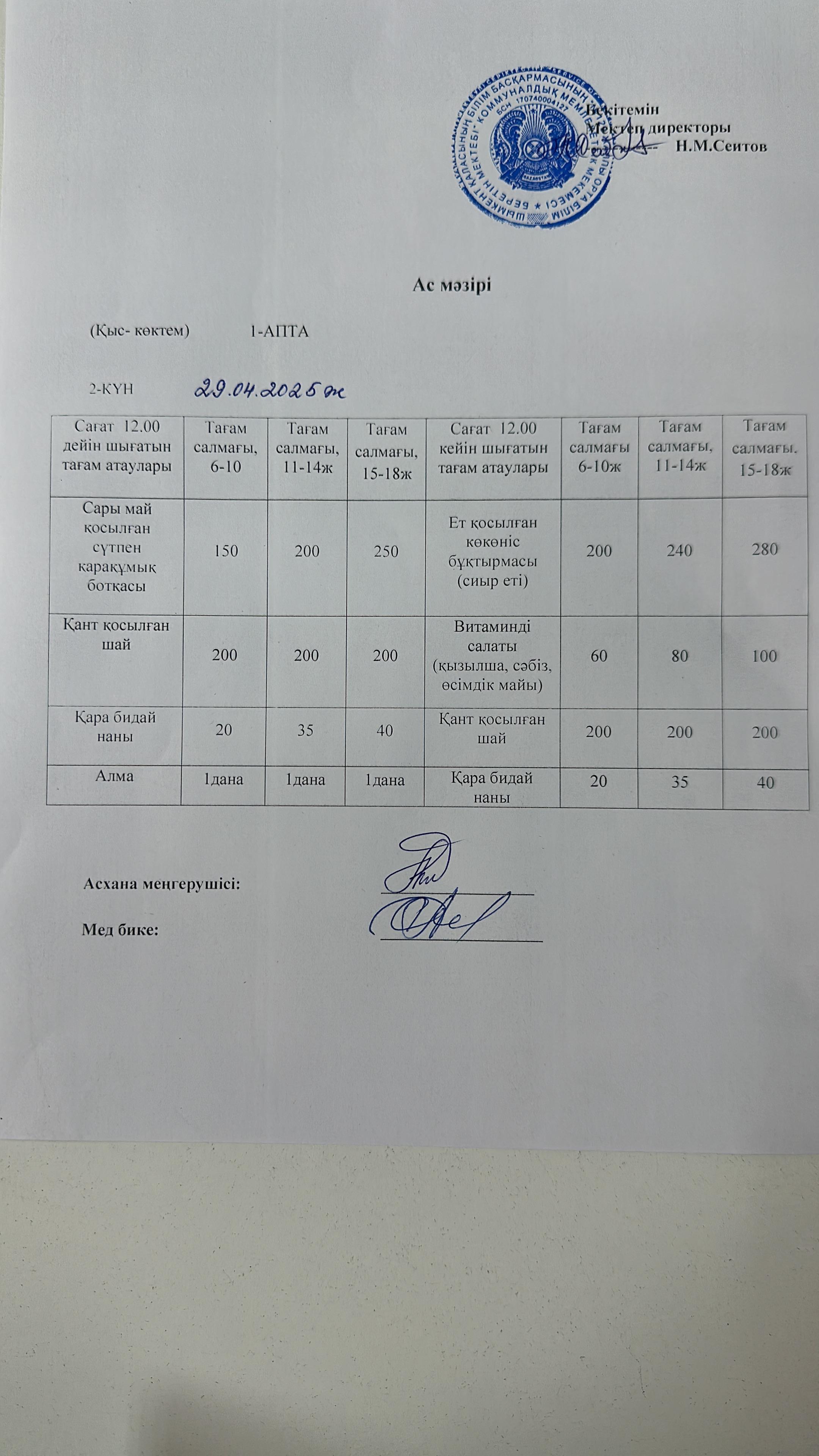29.04.2025ж Бір күндік асхана мәзірі » №129 жалпы орта білім беретін мектеп