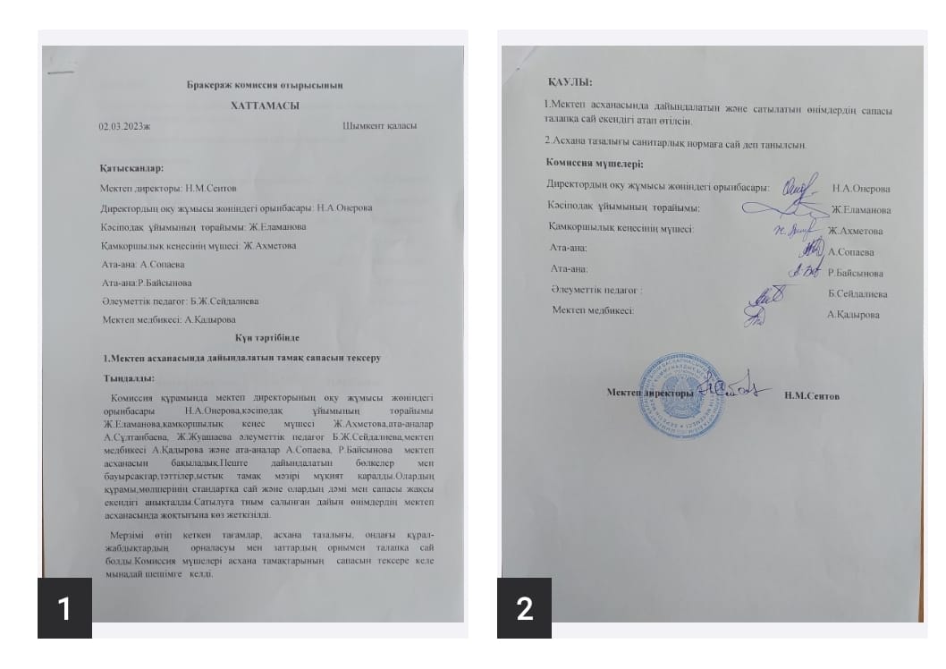 Бракераж комиссия отырысының хаттамасы » №129 жалпы орта білім беретін мектеп