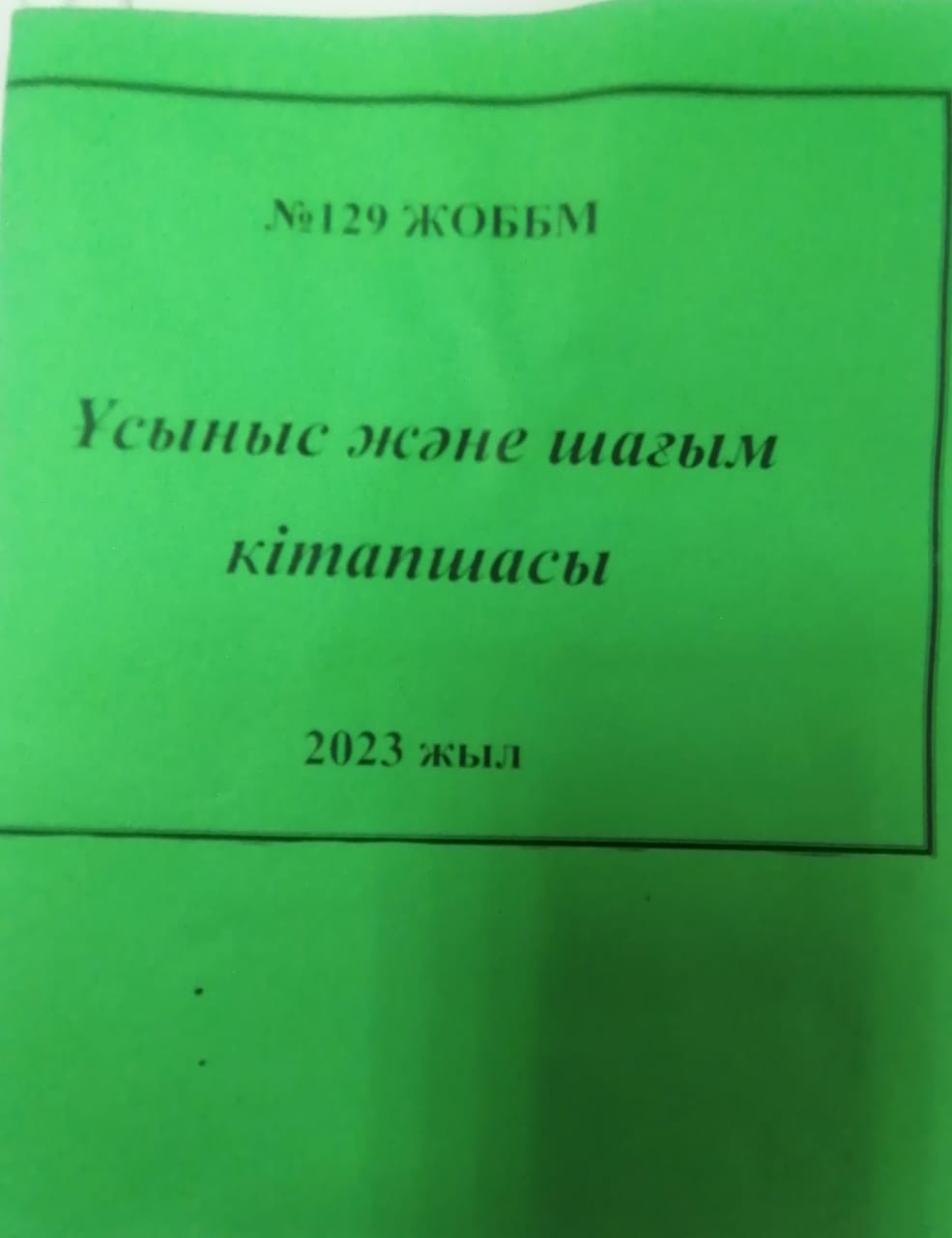 Ұсыныс және шағым кітапшасы » №129 жалпы орта білім беретін мектеп