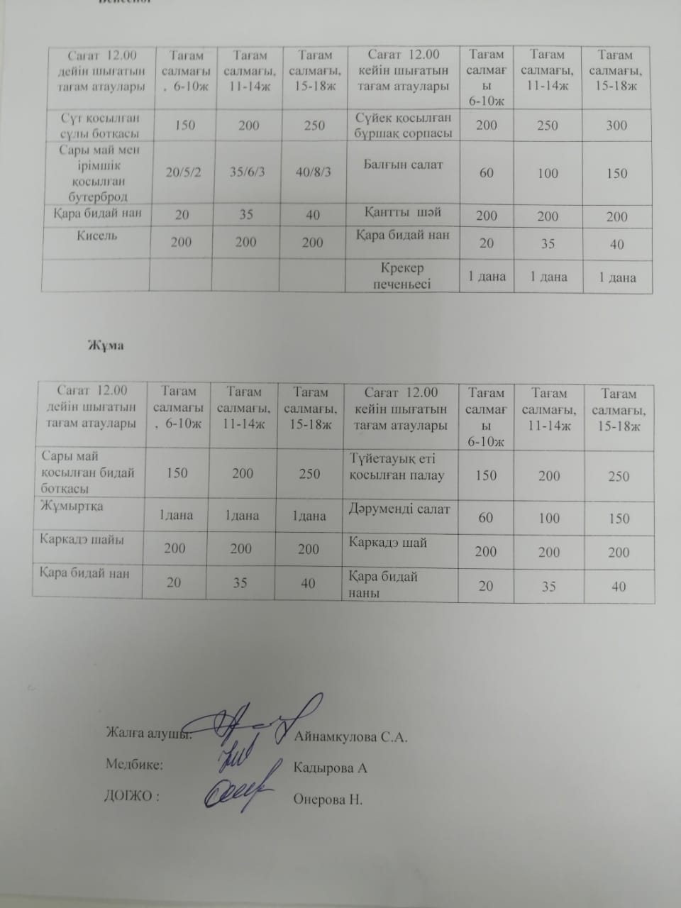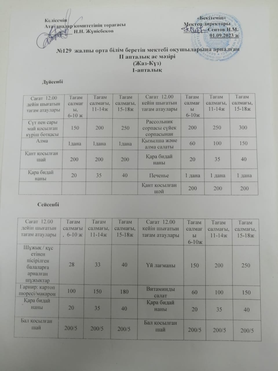 Жаз-Күз апталық ас мәзірі 2023ж » №129 жалпы орта білім беретін мектеп