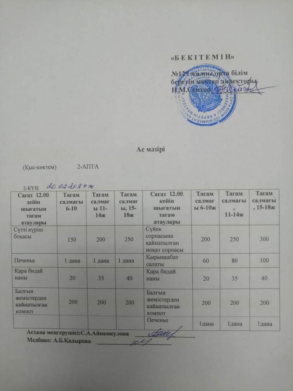 » » » 20.02.2024ж. Бір күндік асхана мәзірі