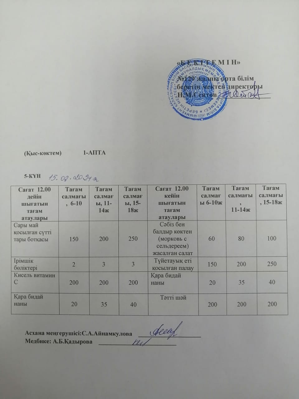 » » » 15.03.2024ж. Бір күндік асхана мәзірі