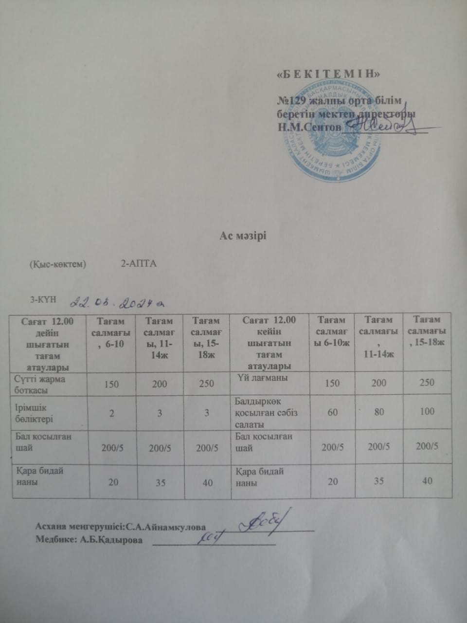 22.05.2024ж. Бір күндік асхана мәзірі » №129 жалпы орта білім беретін мектеп