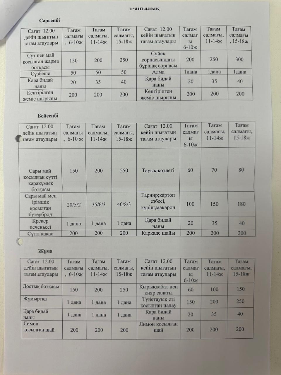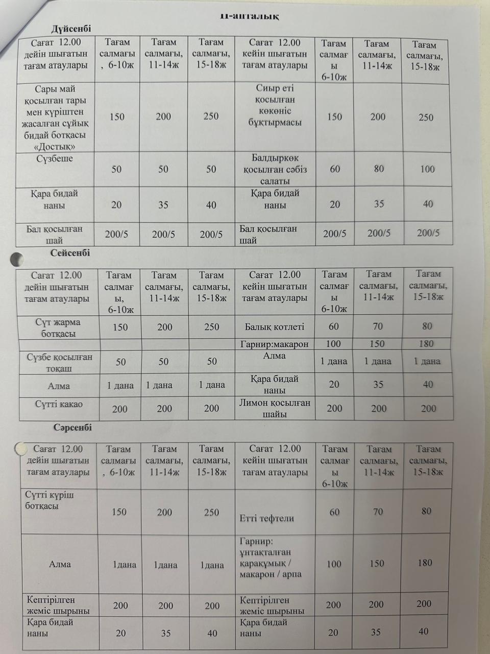 02.09.2024ж. Жаз-күз ІІ апталық ас мәзірі