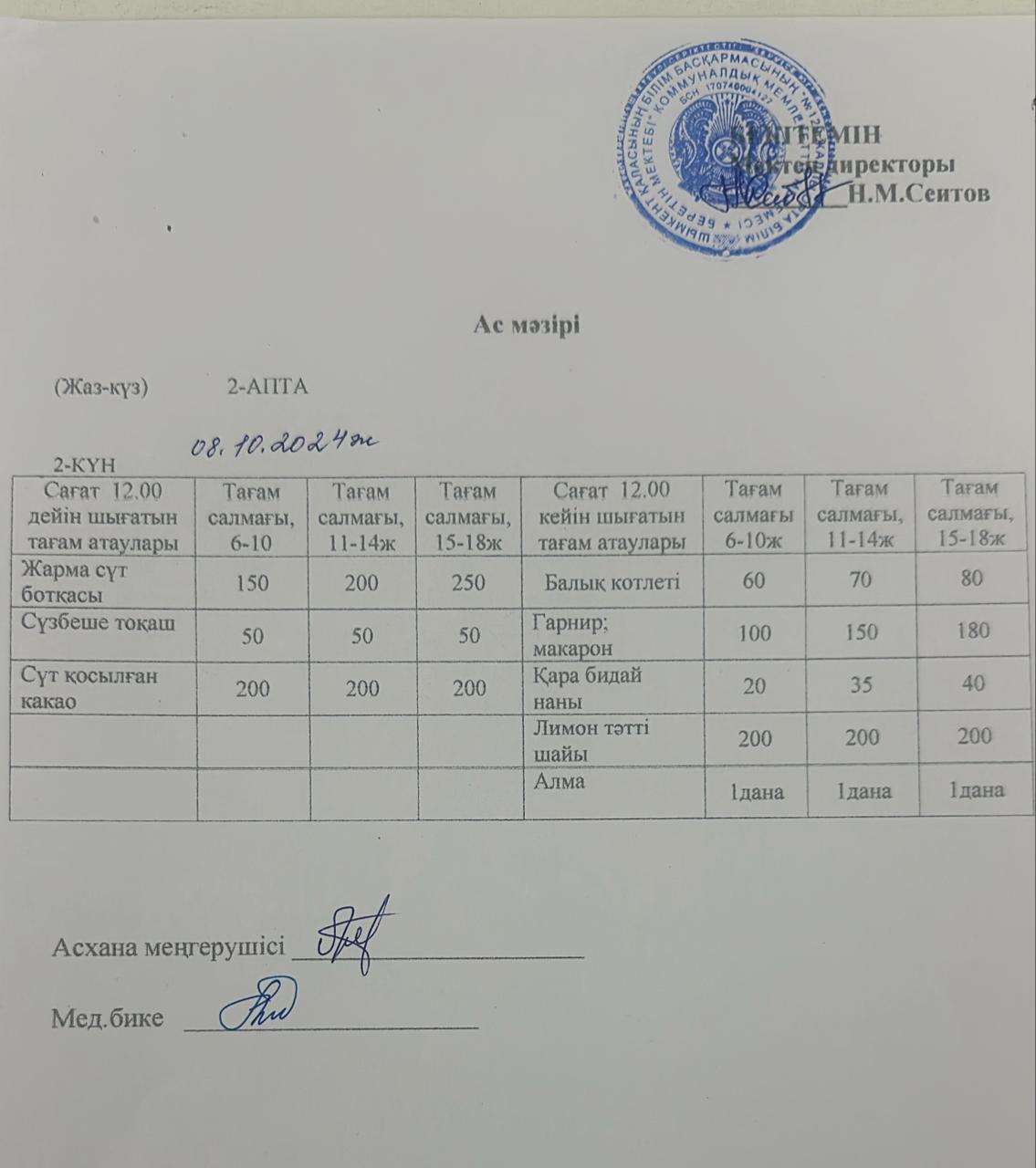 08.10.2024ж Бір күндік асхана мәзірі » №129 жалпы орта білім беретін мектеп