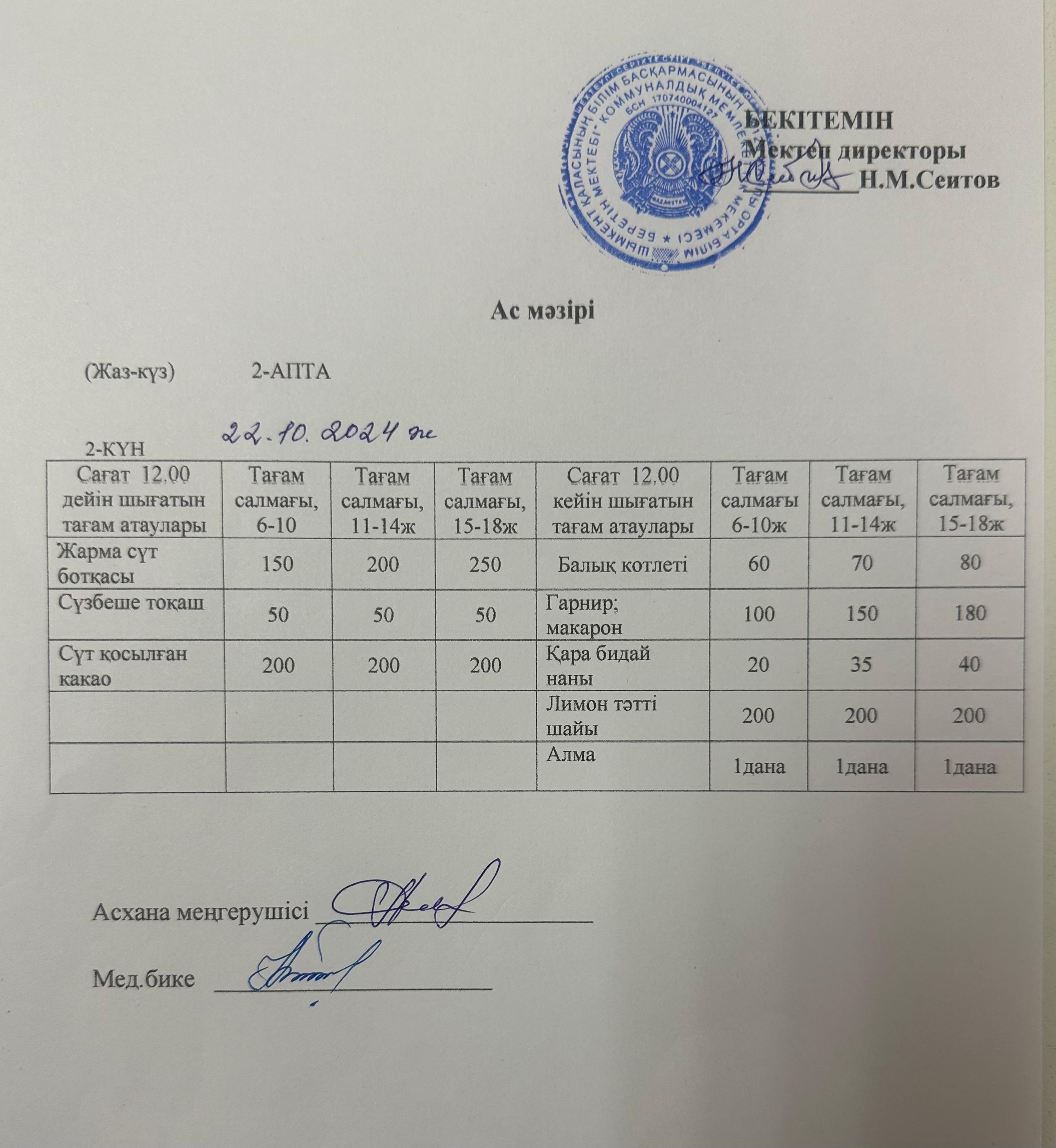 22.10.2024ж Бір күндік асхана мәзірі » №129 жалпы орта білім беретін мектеп