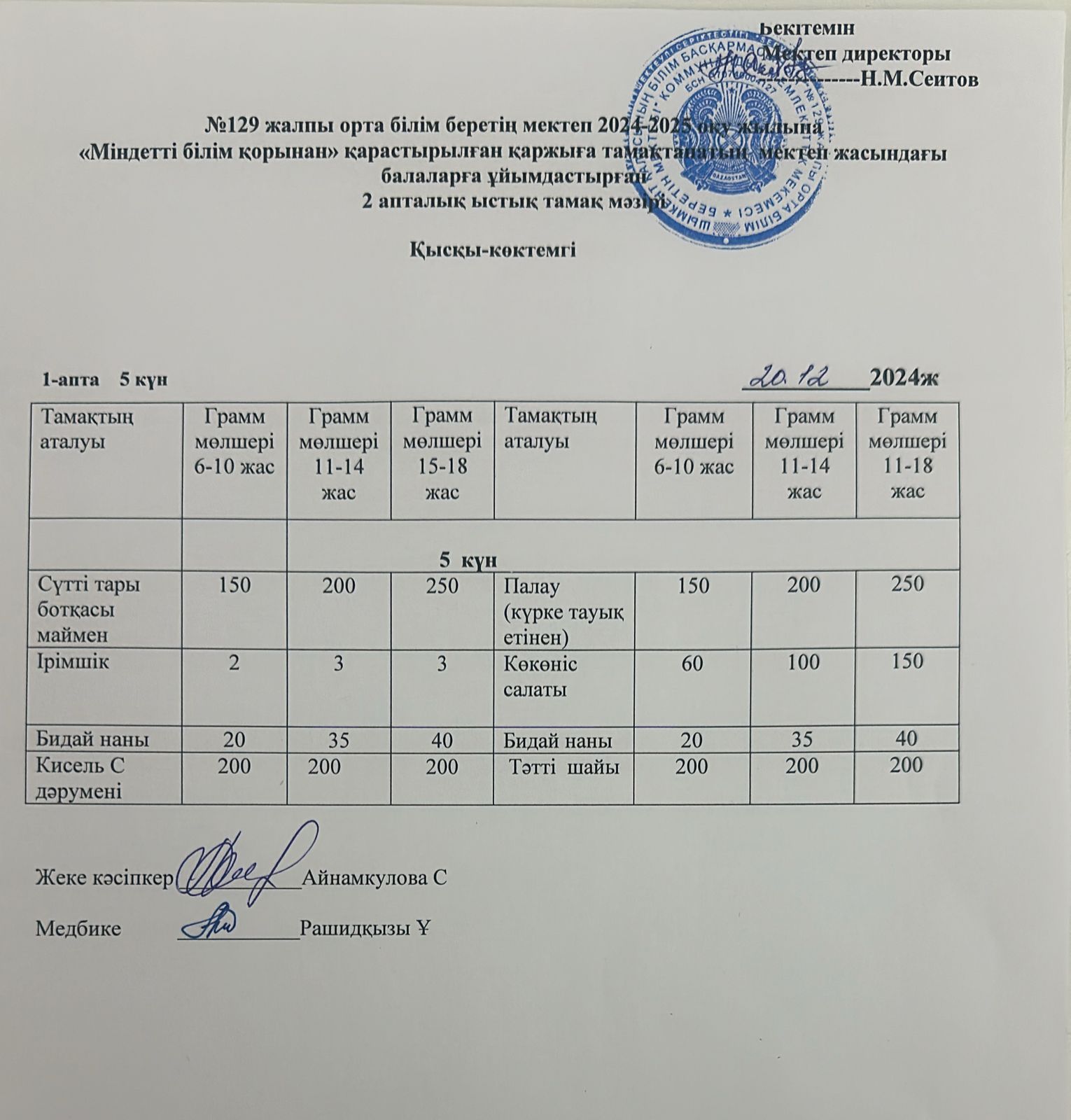20.12.2024ж Бір күндік асхана мәзірі » №129 жалпы орта білім беретін мектеп