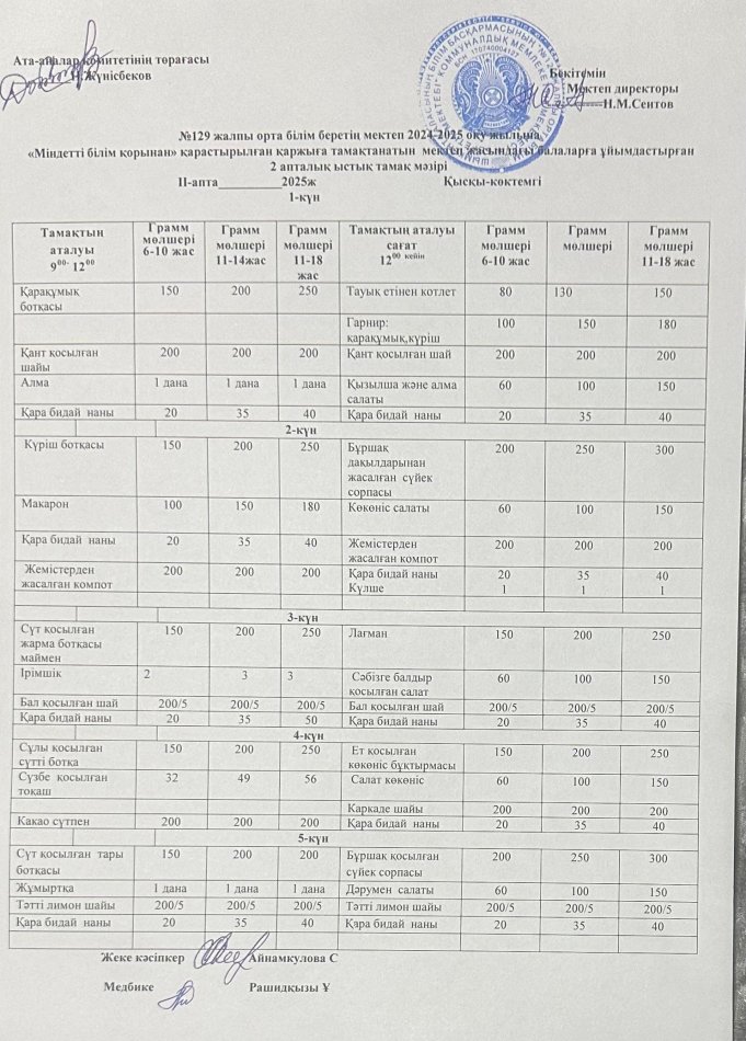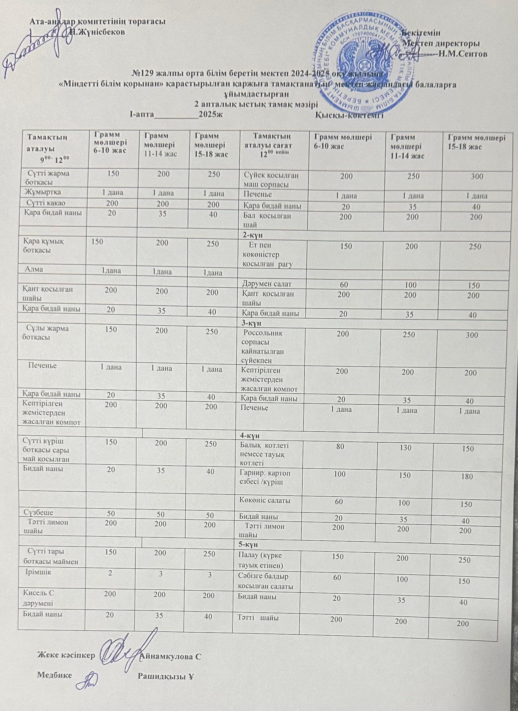 09.01.2025ж Қыс-көктем ІІ апталық ас мәзірі » №129 жалпы орта білім беретін мектеп