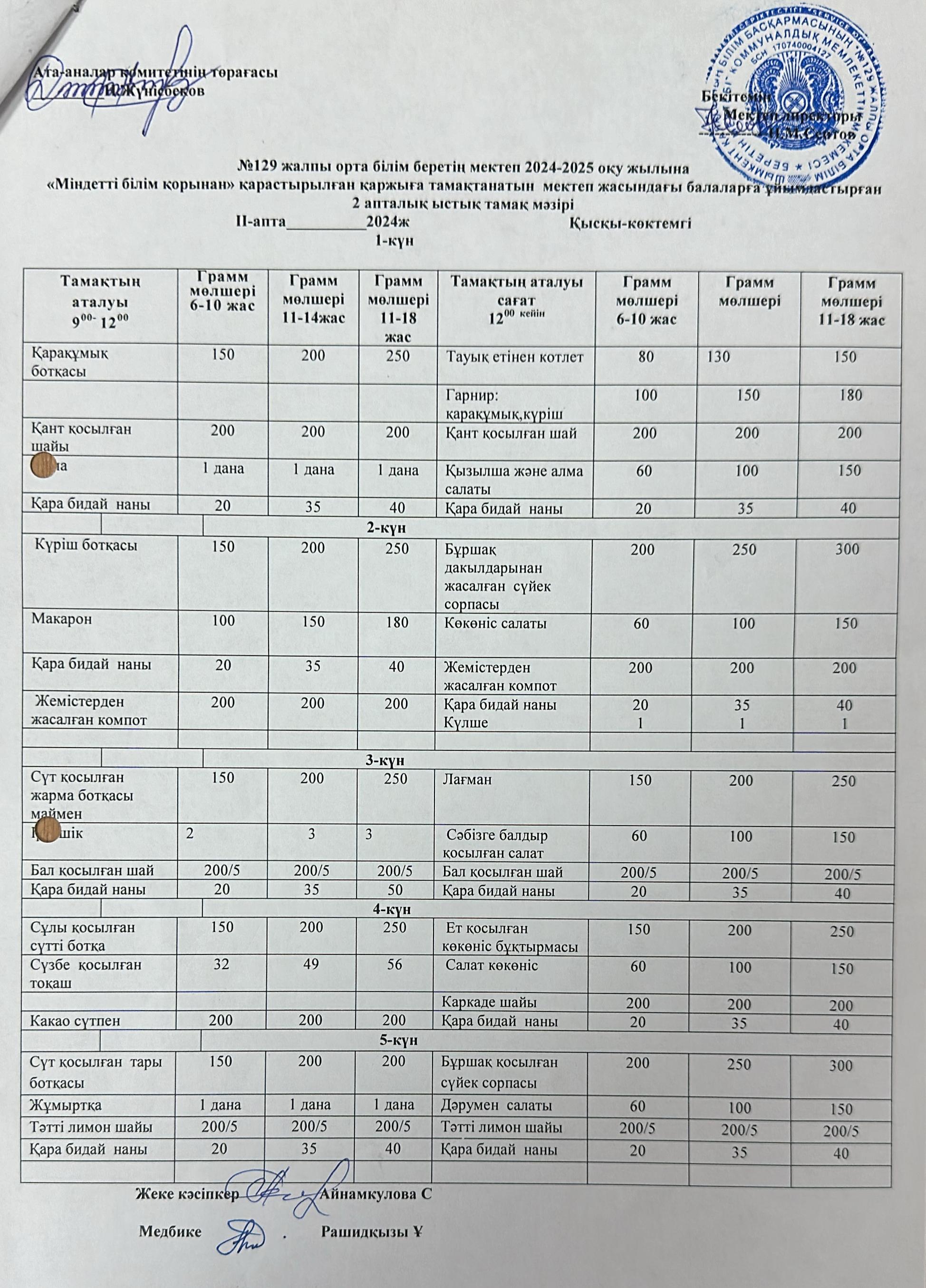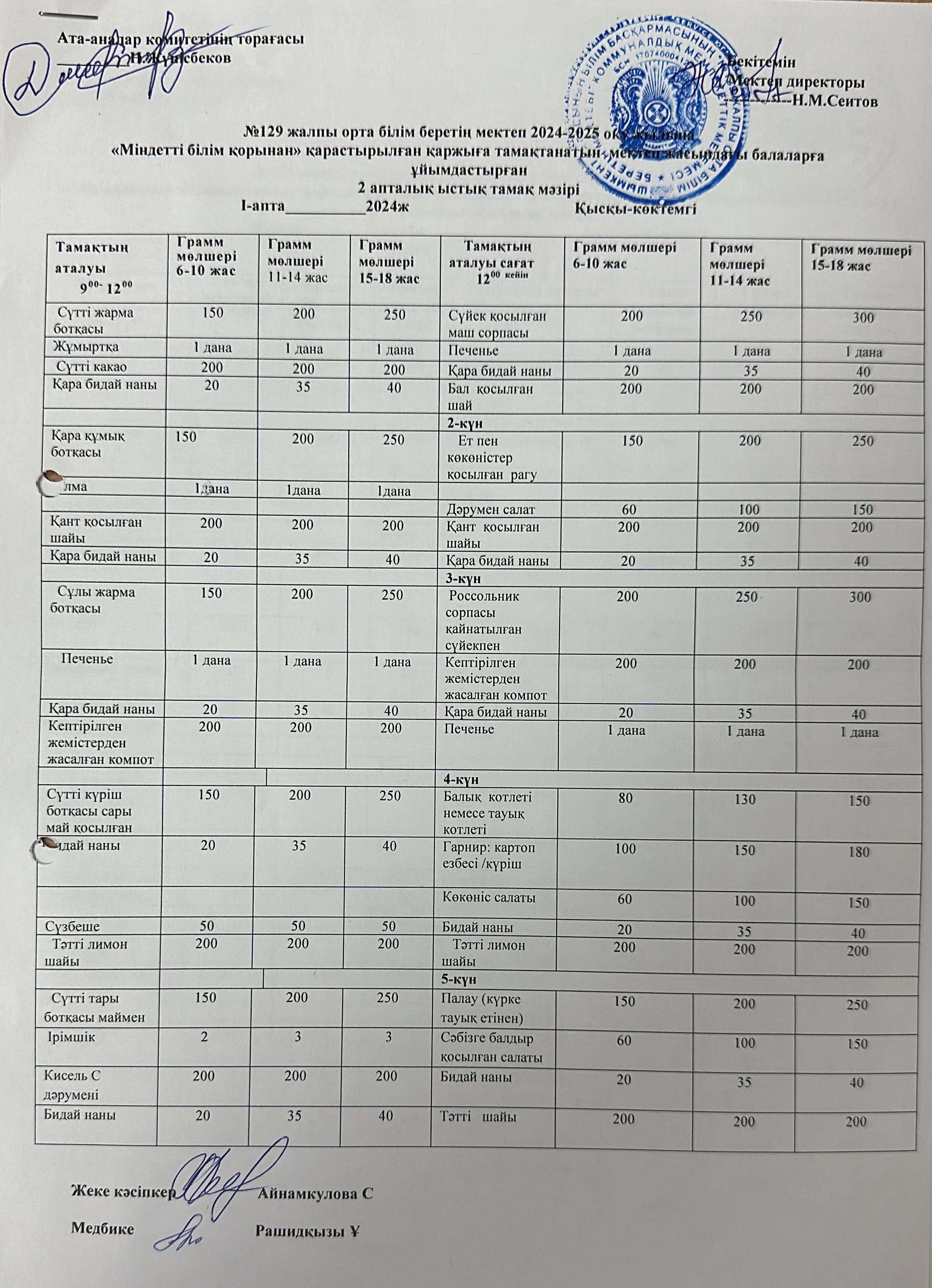 02.12.2024ж Қыс-көктем ІІ апталық ас мәзірі » №129 жалпы орта білім беретін мектеп