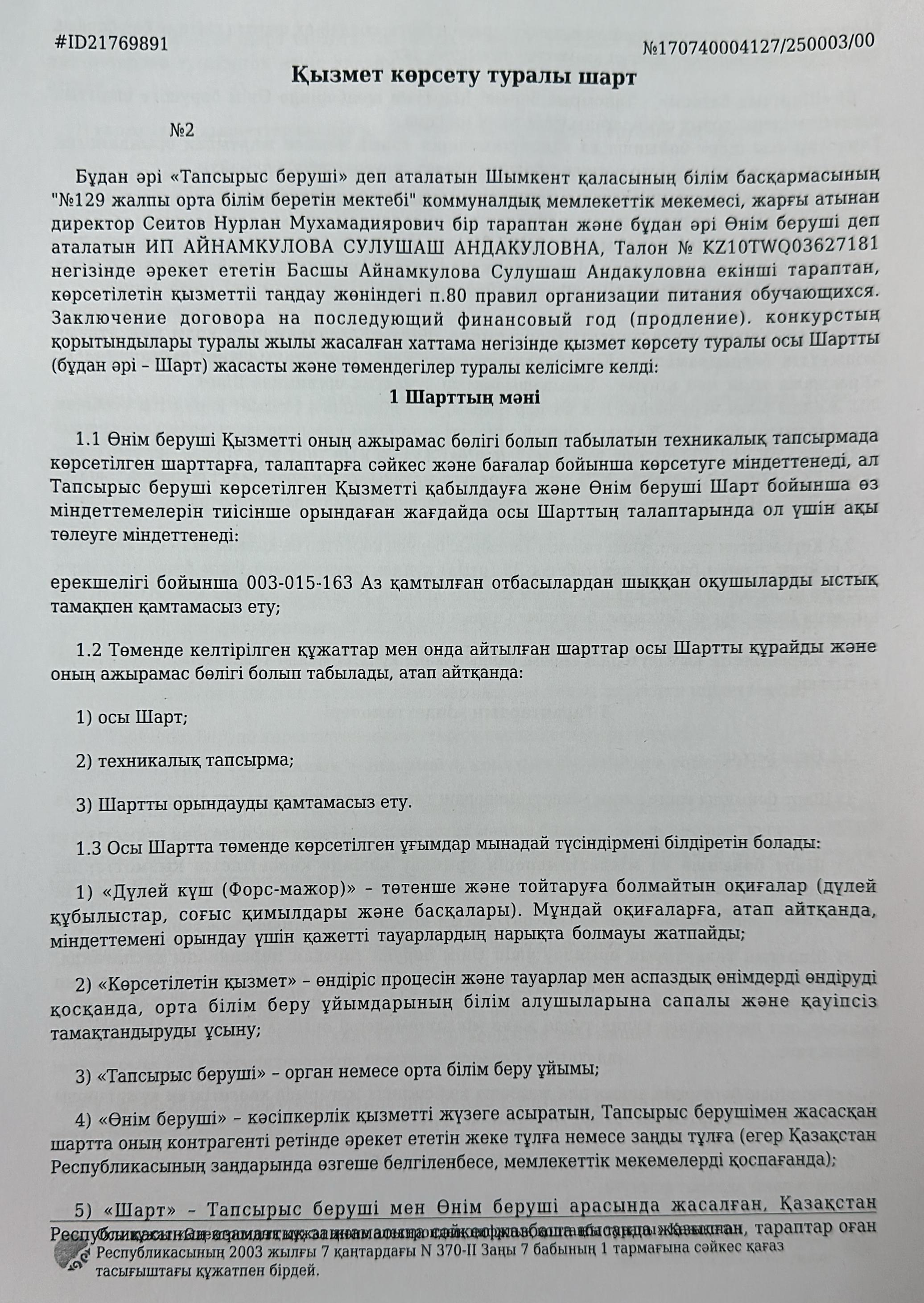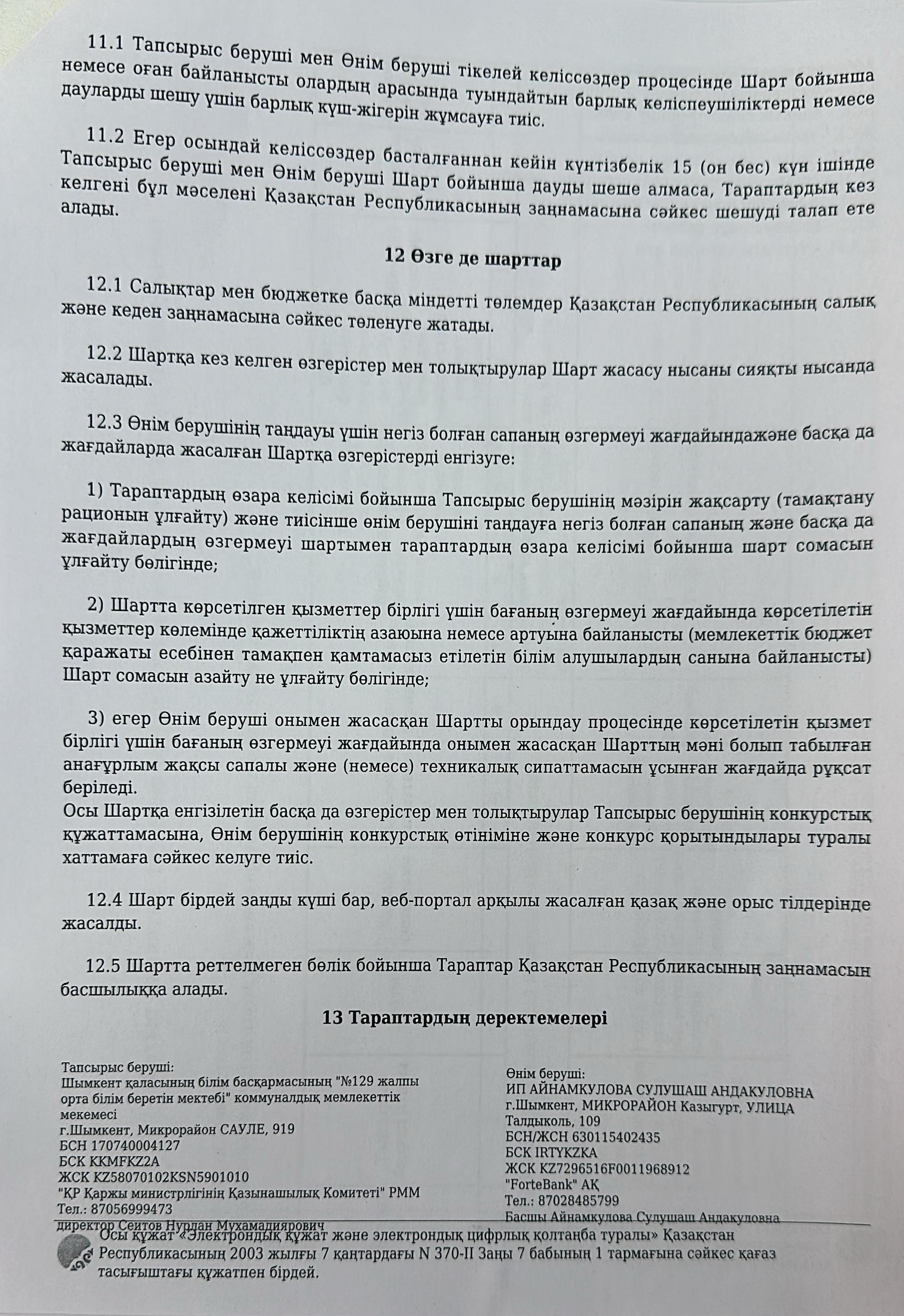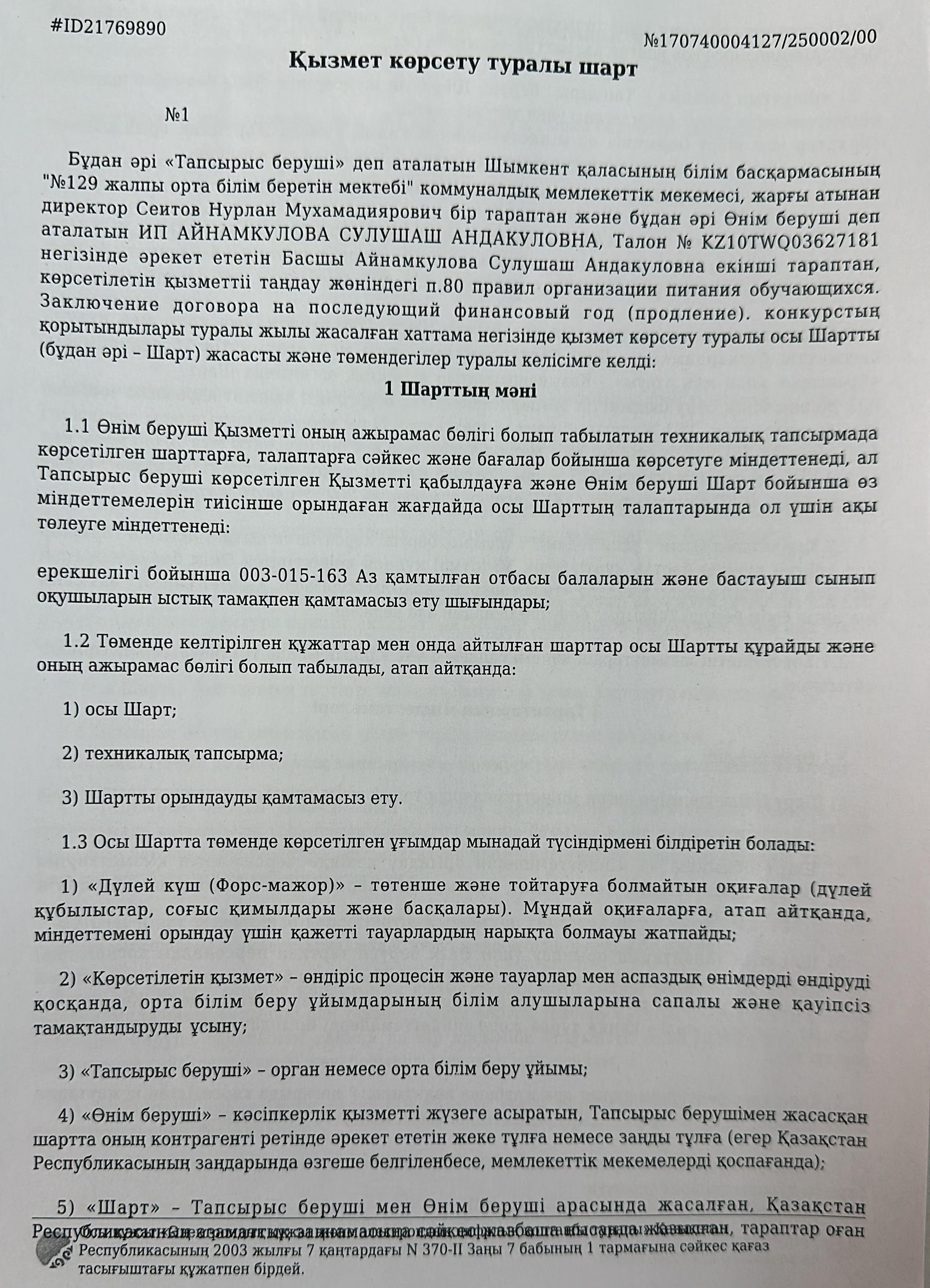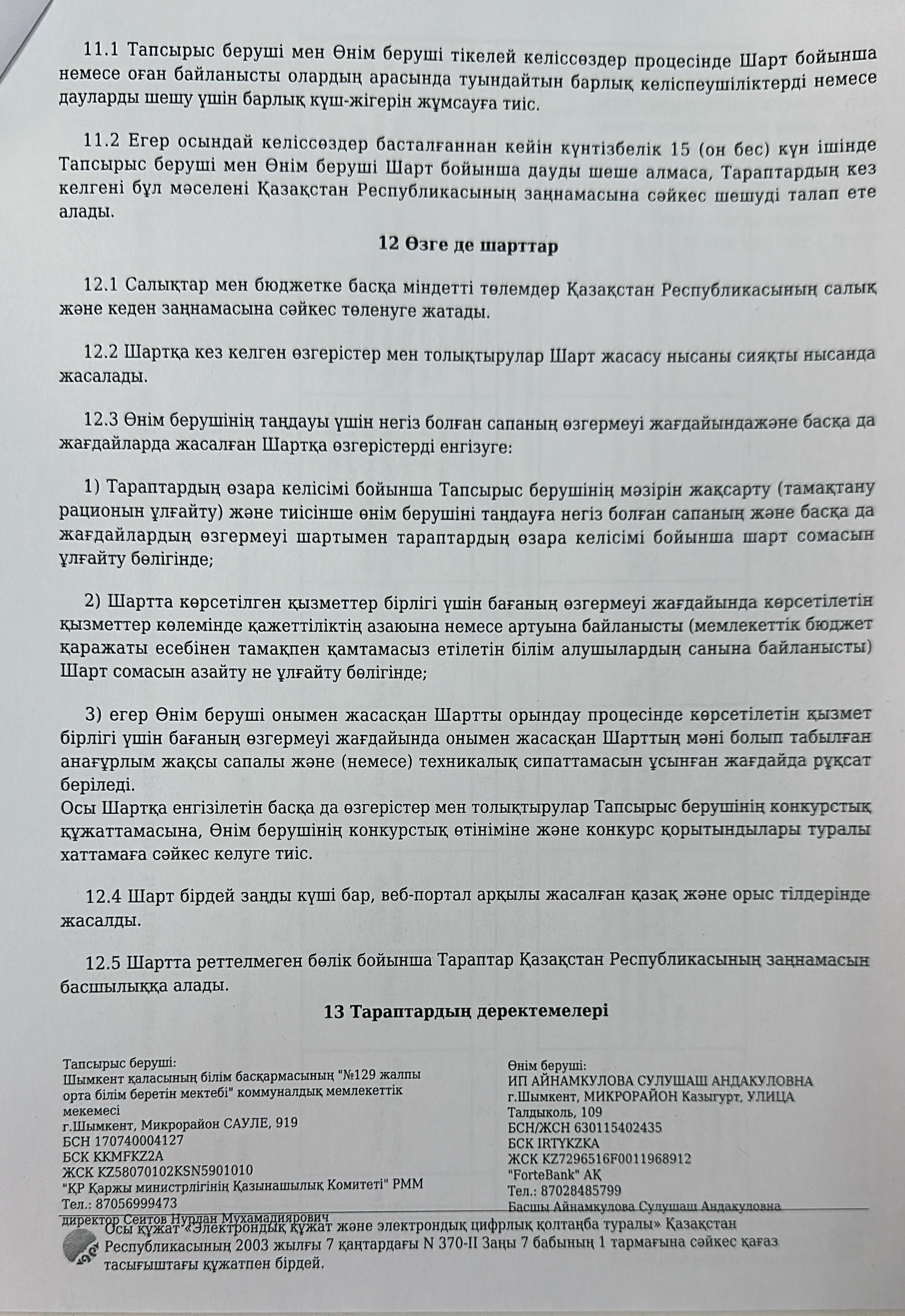 09.01.2025ж Келісім шарт 2025ж » №129 жалпы орта білім беретін мектеп