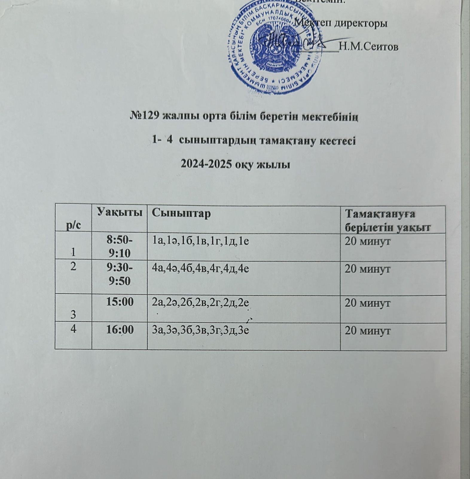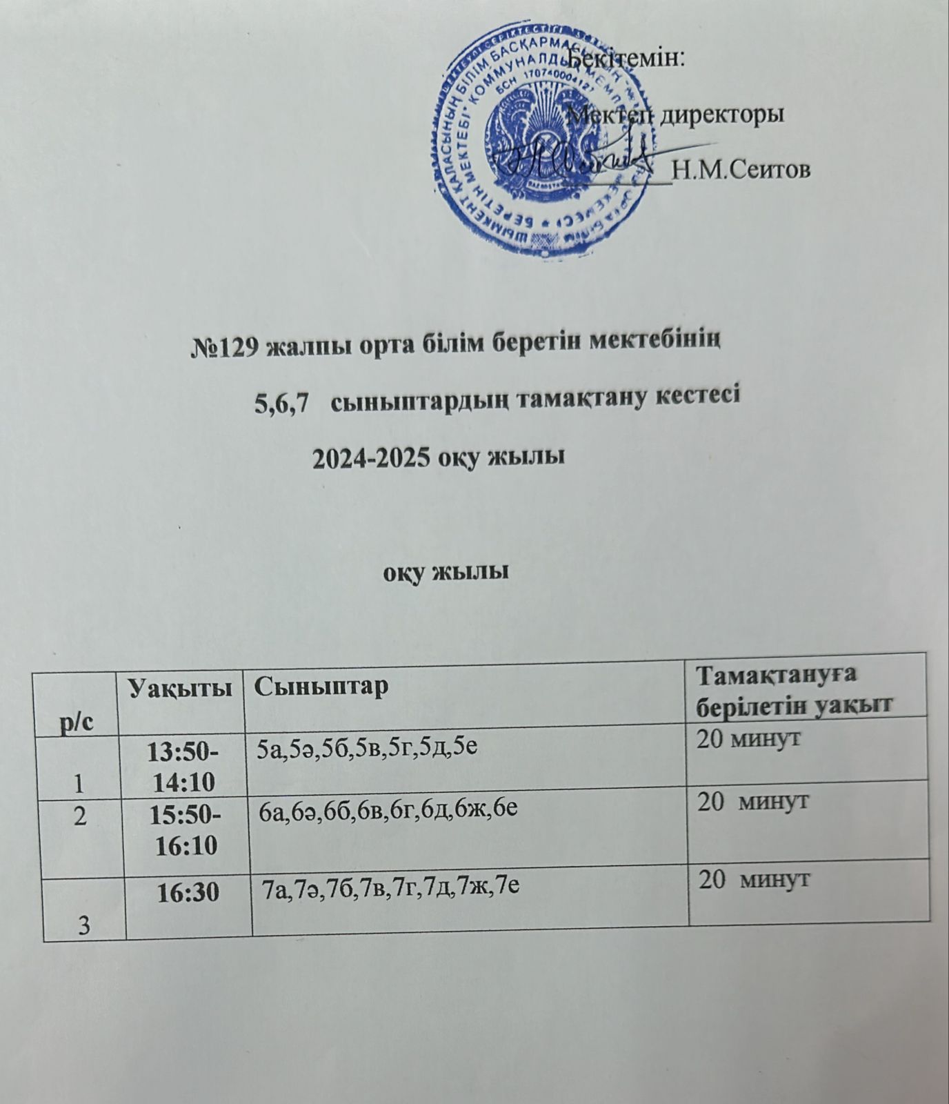 02.09.2024ж Тамақтану кестесі 2024-2025 оқу жылы » №129 жалпы орта білім беретін мектеп