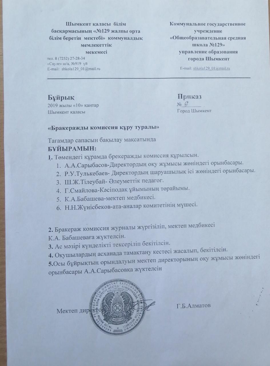 "Мектептік тамақтандыру" айдары » №129 жалпы орта білім беретін мектеп